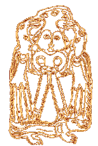 Ylhäällä oikealla olevassa figuurissa maa-elementtiä edustaa maahan kaivautumista harrastava majava. Kolmipäisyyttä lienee tarkasteltava yleis-eurooppalaiseen kolmois-jumalattareen verraten. Kolmihahmoinen jumalatar esiintyy mm. Maltalla kolmihuoneisina megaliittitemppeleinä, ja Pohjoismaissa "kohtalottarina" (nornat). Alemmassa kuvassa näkyy myös elementit: Aurinko = taivas; Lisko = maa. maanalainen; Jumalatar sijoittuu ihmisten maailmaan.